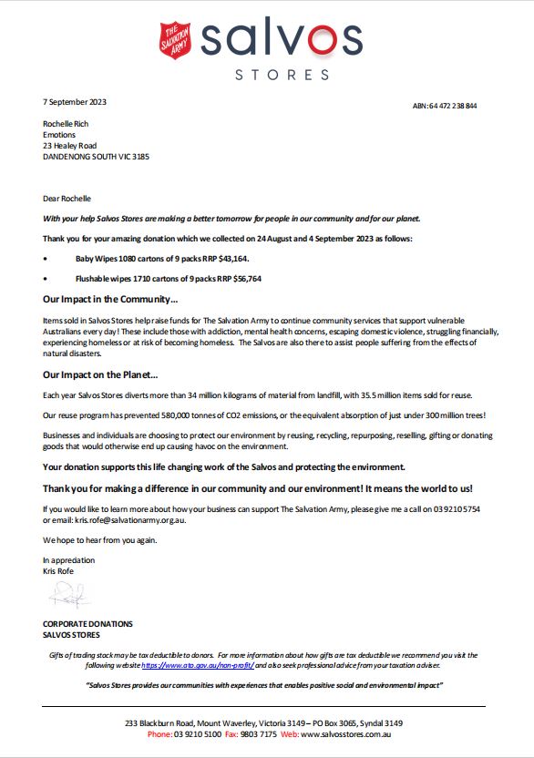 Thanks to our community at Emotions, we've been able to donate baby and flushable wipes worth $99,928 RRP to Australian families in need. Your support has been pivotal in making a daily difference to parents and caregivers.